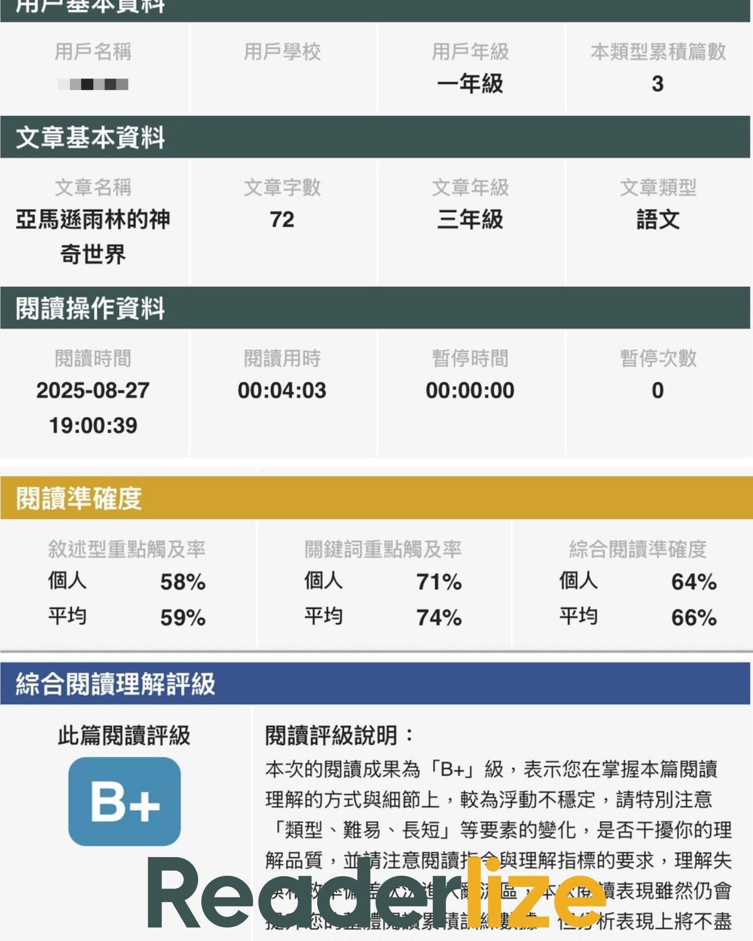 有許多大人(研判是家長或家教)也嘗試參與閱讀救星的理解訓練,並且在數據結果出來後,會私訊客服團隊,詢問數據意義、優化方式!