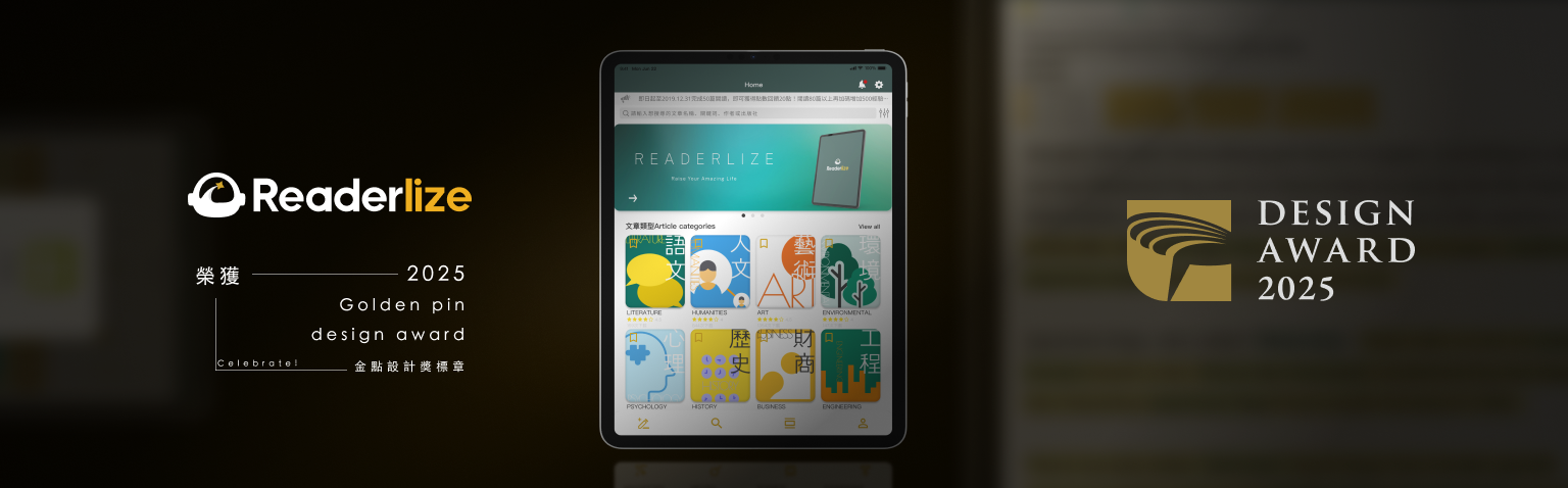 閱讀救星Readerlize榮獲【金點設計獎 Golden Pin Design Award】肯定!即刻享有訂閱優惠方案!